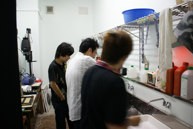 今回は印画紙への現像方法をまなびました。 講師にはOBのハリヤさん&3年生ヤナセさんをむかえて、暗室の使用方法などを2時間ほどかけて教えていただきました ^-^ 一方生徒は・・・・一人? 講座が始まるとあとから数名が来て、最終的には4人になりました。 正直もっと集まると思ってましたが ^へ^; やっぱり、デジカメの時代に暗室での現像にはみんな興味がないのかなぁ・・・・。 自分もデジカメに移行したのですが、今回暗室が使えるようになってフィルムにもどってみたくなりました ←講師ハリヤさん 1年 ムカイグチ